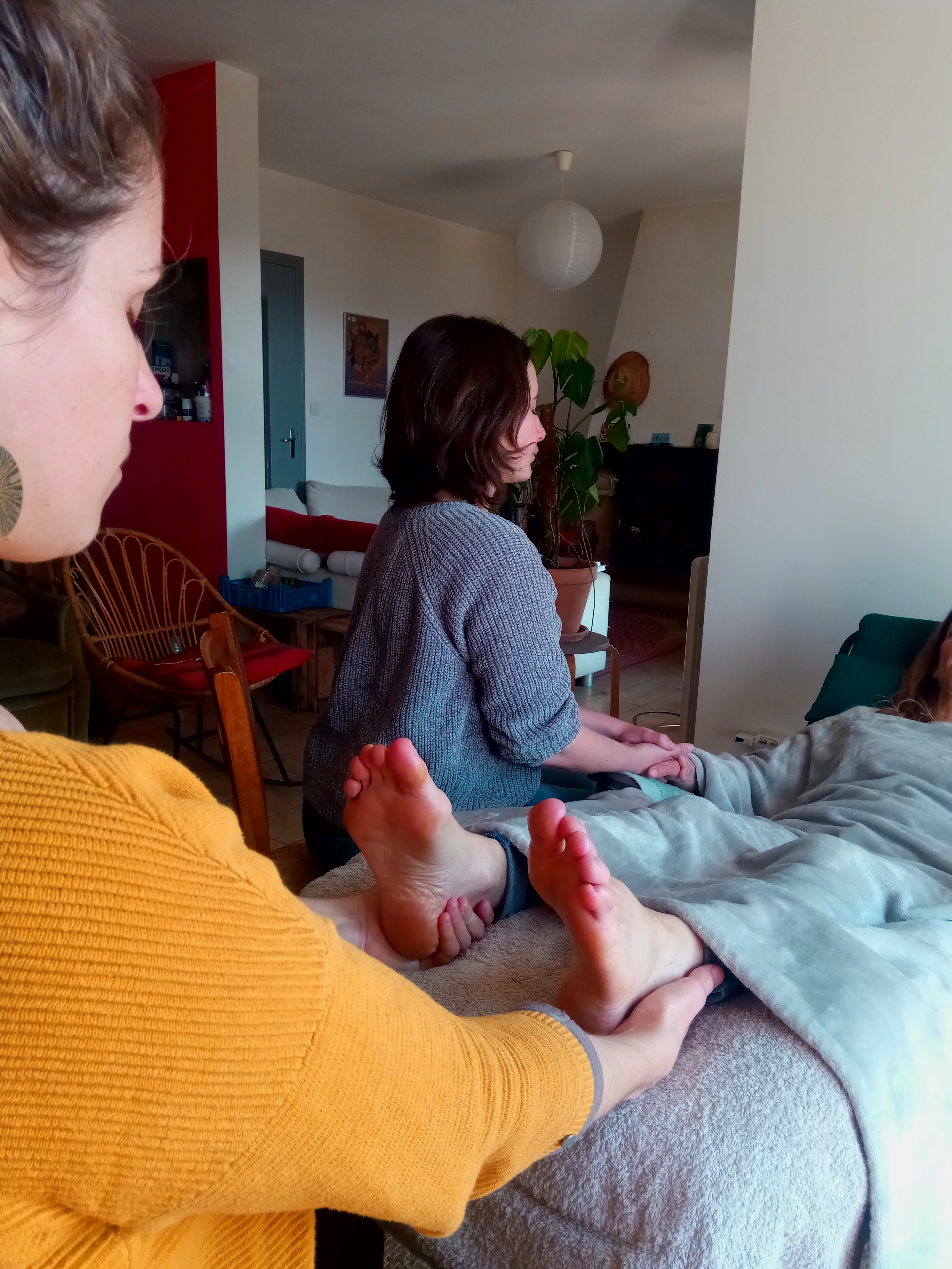Les 4 mains sont les miennes et celles de Julie Charlet, une amie et praticienne en massage (pieds, mains, tête) et reiki.